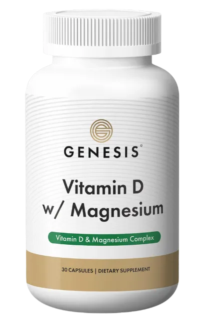 Optimize your health with Genesis Supplements Vitamin D w/ Magnesium. Our expertly crafted blend harnesses the power of Vitamin D3 and Magnesium to support bone health, immune function, and mood regulation. Choose Genesis Vitamin D w/ Magnesium for daily vital nutrients and well-being.